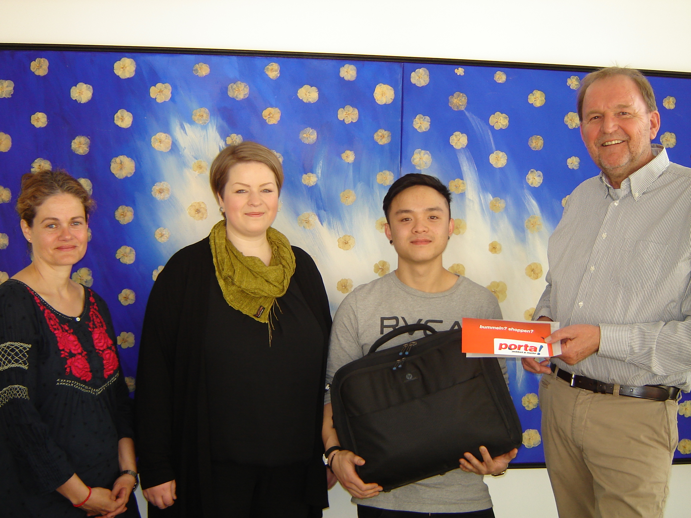Der 18 jährige Sinh Thai Ngyen absolviert zur Zeit ein Freiwilliges Soziales Jahr und möchte dann gerne sein Fachabitur machen. „Zukunft für Kinder e.V.“ wird ihm diese Schulausbildung finanzieren. Eine eigene Wohnung hat er schon gefunden, was fehlt ist das Nötigste. Der Verein unterstützt ihn hierbei mit dem Starter-Kit inklusive eines 500 EUR Gutscheins von Porta Möbel. Wir wünschen Sinh Thai alles Gute und viel Glück beim Start in die Selbständigkeit!