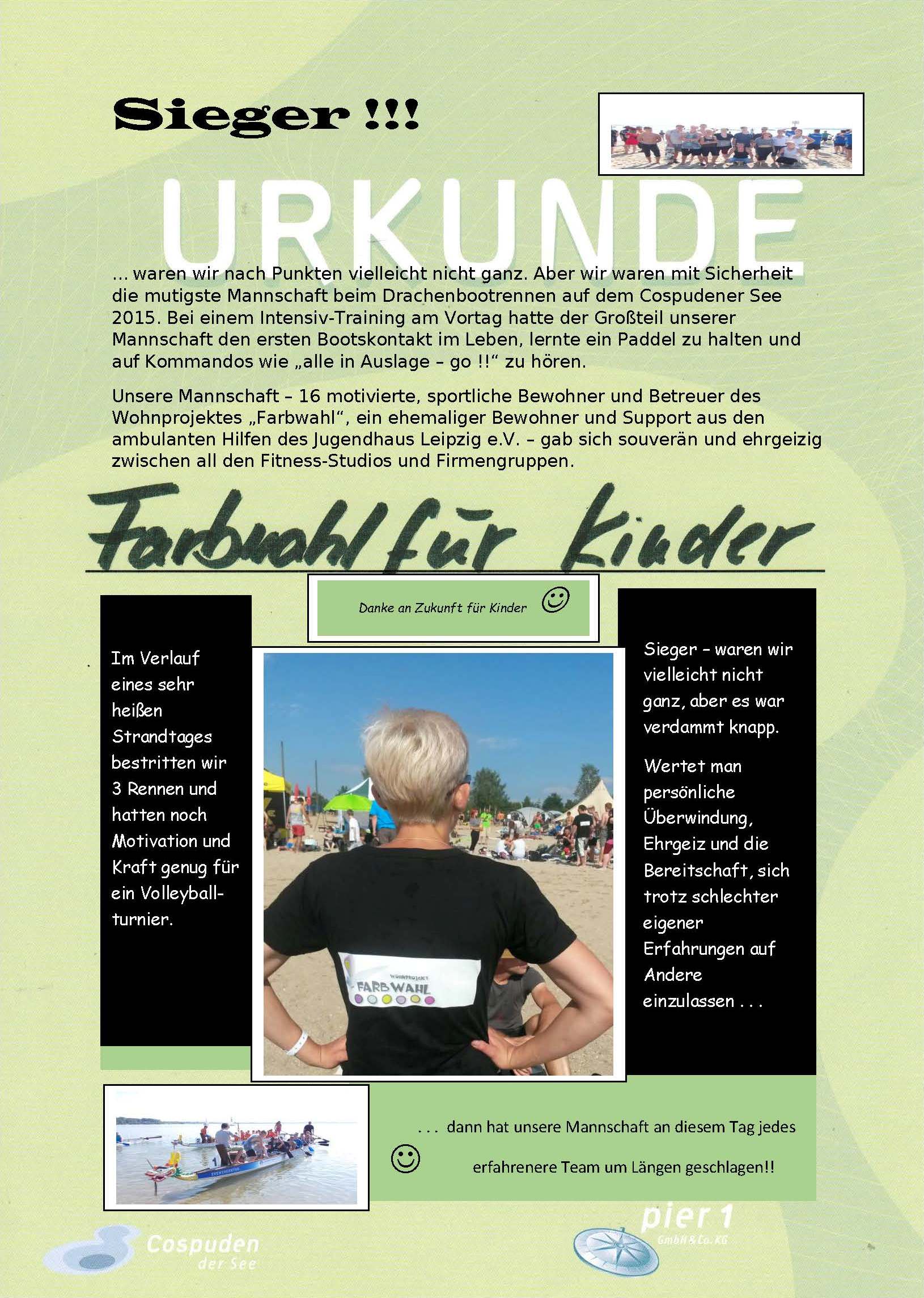 Wir freuen uns, die Siegesurkunde der WG Farbwahl veröffentlichen zu können! Zukunft für Kinder e.V. hat diese Errungenschaft durch eine finanzielle Förderung möglich gemacht. Vielleicht sieht man das Farbwahl-Team ja bald wirklich auf Platz 1 eines Siegertreppchens..? Wir drücken die Daumen.