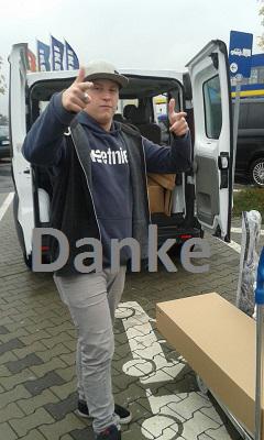 Diese Botschaft sendet Tom uns als Dank und zeigt, wie voll der Kofferraum nach dem Einkauf mit dem 500-Euro-Gutschein von Ikea ist. Wir freuen uns, dass seine Wohnung jetzt bestimmt heimlicher aussieht. Viel Erfolg in der Zukunft!